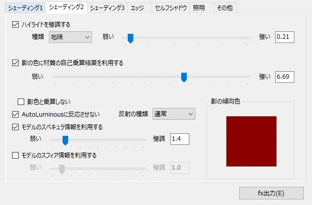 シェーディング1、エッジ、その他は変更なしです。
