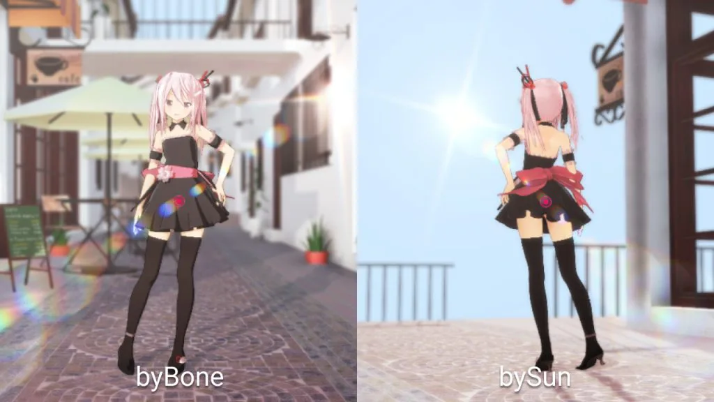 byBoneの光の位置を動かしたければxファイルのxyzを、bySunを光の位置を動かしたければMMDの照明をいじって下さい。