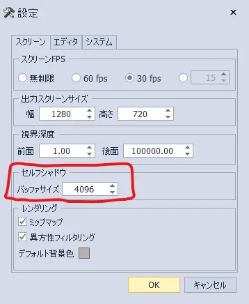 左上の設定を開いてセルフシャドウの項目のバッファサイズの値を数倍にする。
