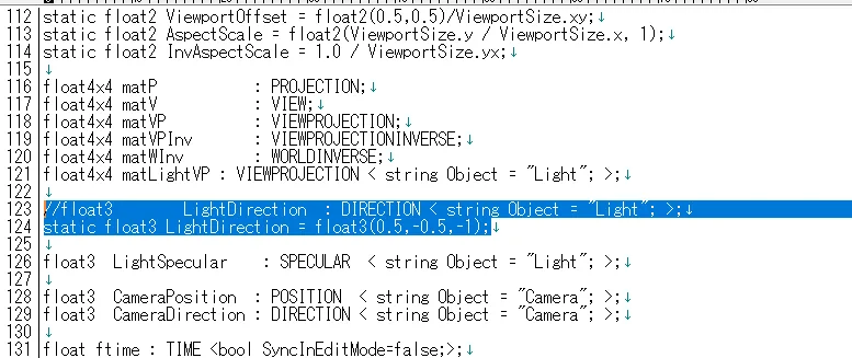 float(0.5,-0.5,-1)のところの数値を変えると光の位置が変わります。